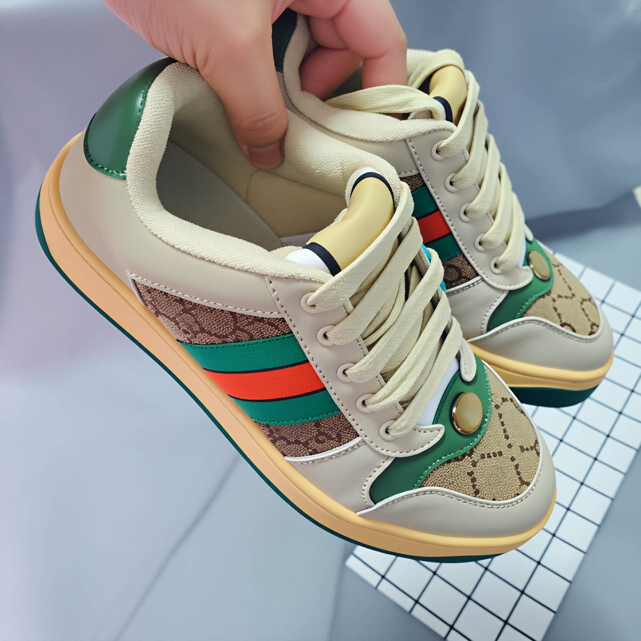复古脏脏鞋春夏2026年网红真皮透气休闲板鞋欧洲站老花拼色小脏鞋
