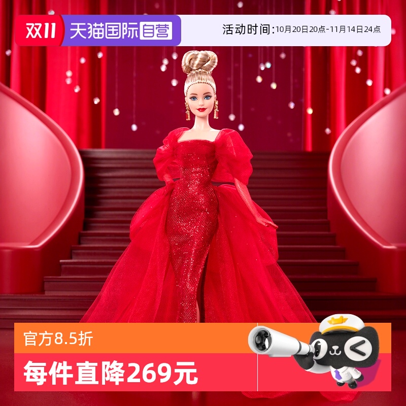 【自营】芭比娃娃美泰80周年纪念款典雅金发珍藏成人黑标收藏玩具