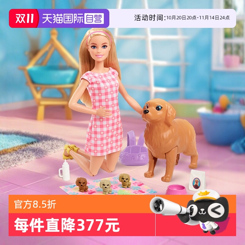 【新品】芭比娃娃Barbie绒绒好时光系列之活力贵宾犬女孩玩具送礼