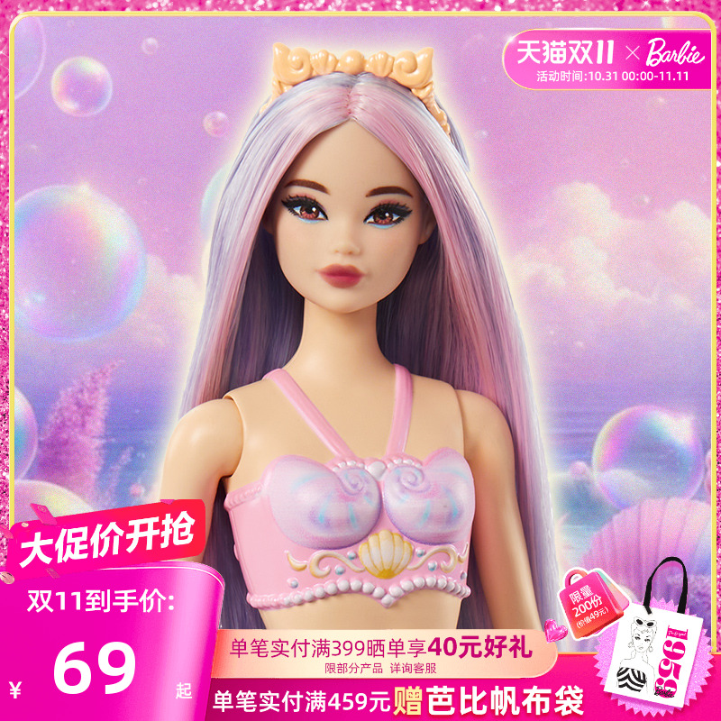 芭比娃娃Barbie美人鱼系列童话世界女孩公主过家家生日礼物玩具
