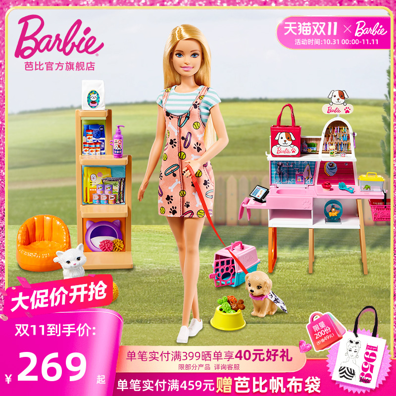 芭比娃娃Barbie宠物商店套装职业体验穿搭搭配女孩过家家玩具礼物
