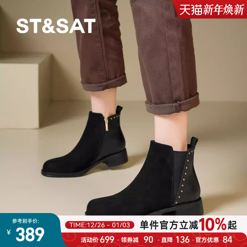 思加图交响海豚加绒高跟短靴2025冬新款爆款好看高级显瘦时装靴女
