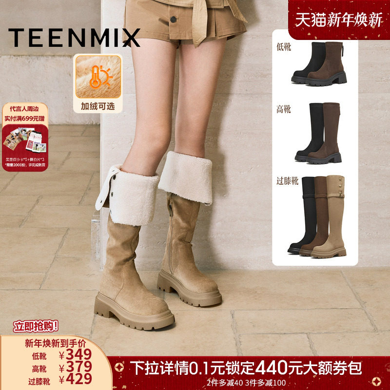 天美意厚底增高加绒过膝长靴弹力靴高筒时装靴女鞋瘦瘦靴高跟短靴