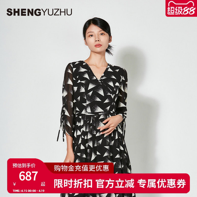 - 印花雪纺连衣裙