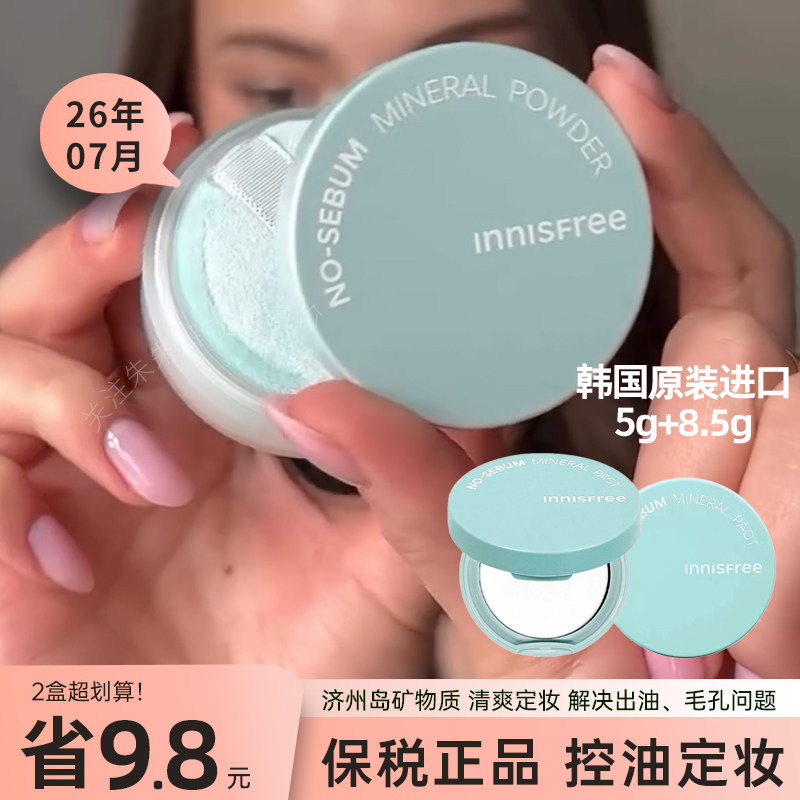 韩国进口悦诗风吟散粉控油持久定妆矿物质5g薄荷8.5油皮粉饼正品