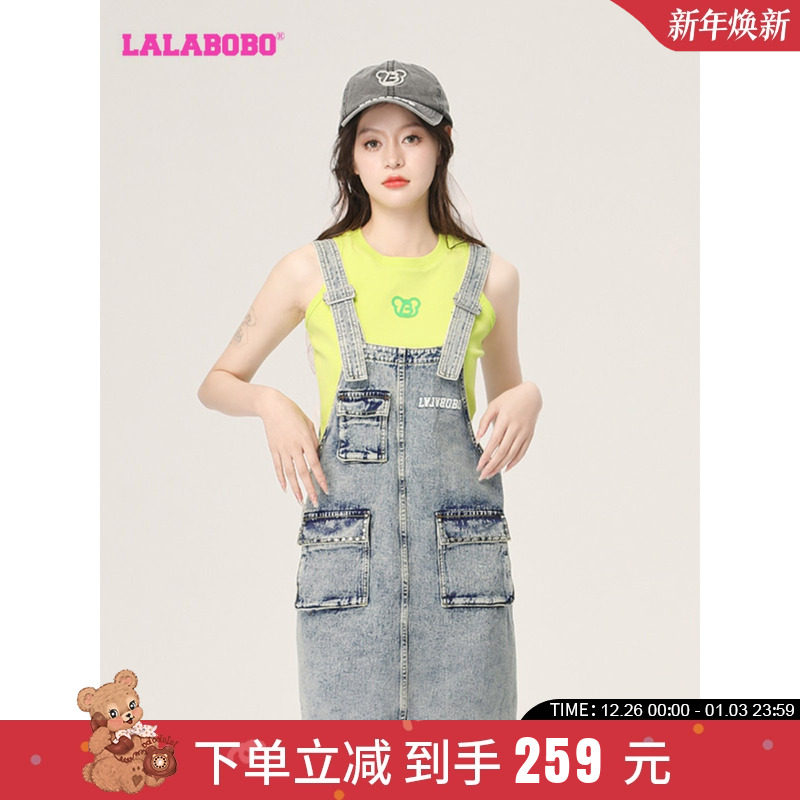 【设计师潮牌】LALABOBO2024夏新款修身显瘦潮流牛仔背带连衣裙女