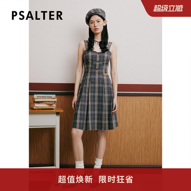 highday轩日2024冬季新复古格纹修身背带裙女气质过膝无袖连衣裙
