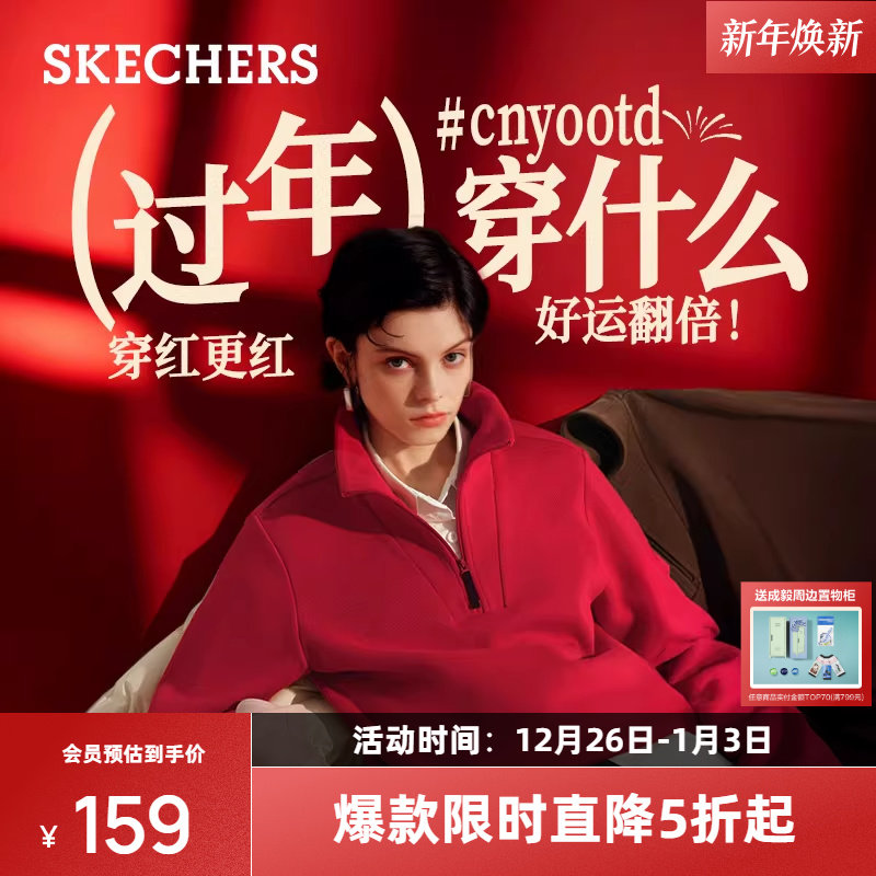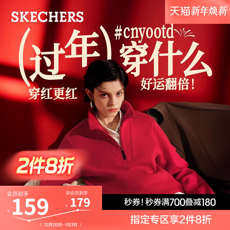 斯凯奇新年战袍卫衣女2026新款拉链翻领套头衫加厚保暖休闲外套