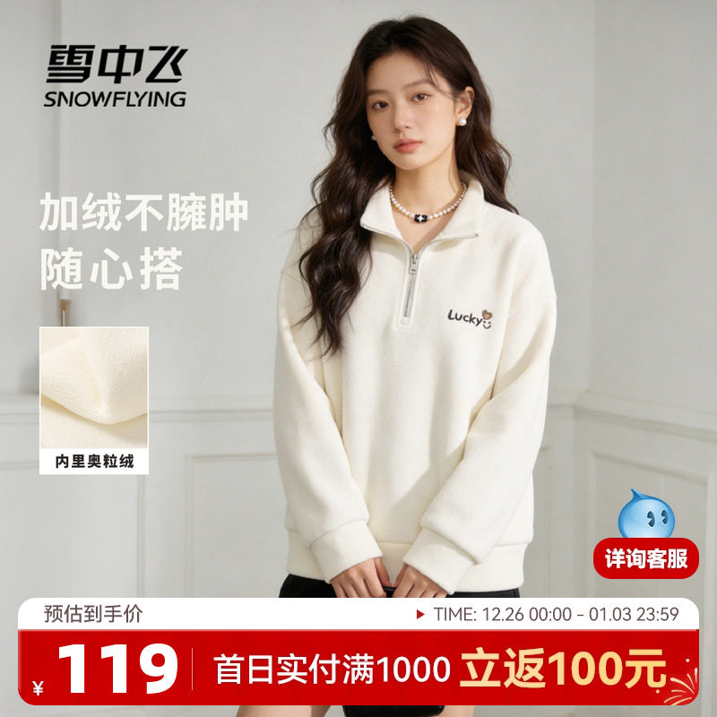 雪中飞加绒卫衣女冬季加厚慕斯绒25新款女士休闲无帽半拉链外套PC