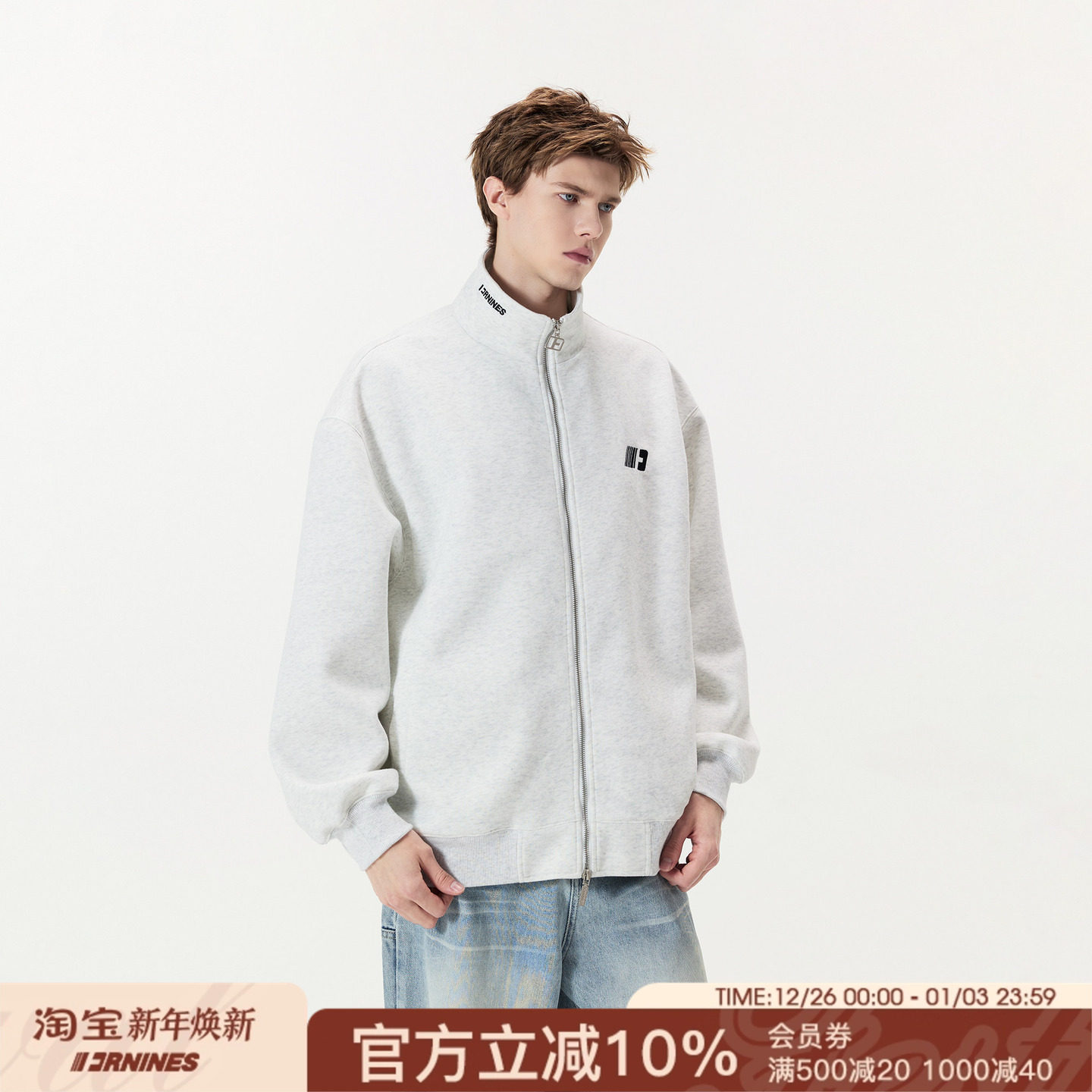 FORNINES刺绣立领拉链开衫加绒卫衣男女潮牌秋冬情侣美式加厚外套