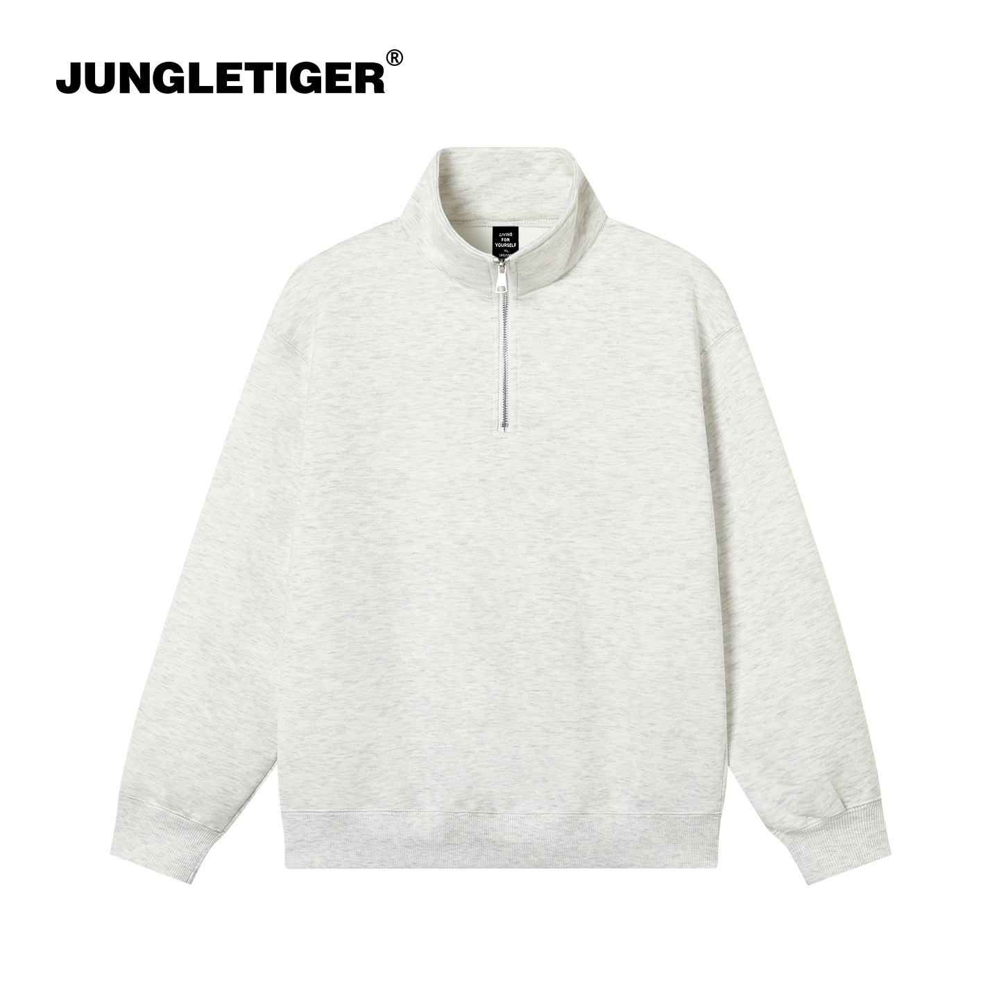 丛林老虎纯色立领重磅加厚卫衣男女秋冬休闲宽松运动衫半拉链外套