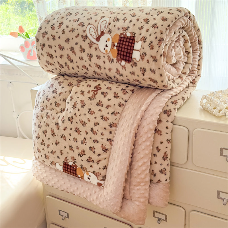 秋冬牛奶绒豆豆被碎花加厚保暖被子春秋被冬被学生单人儿童棉被芯