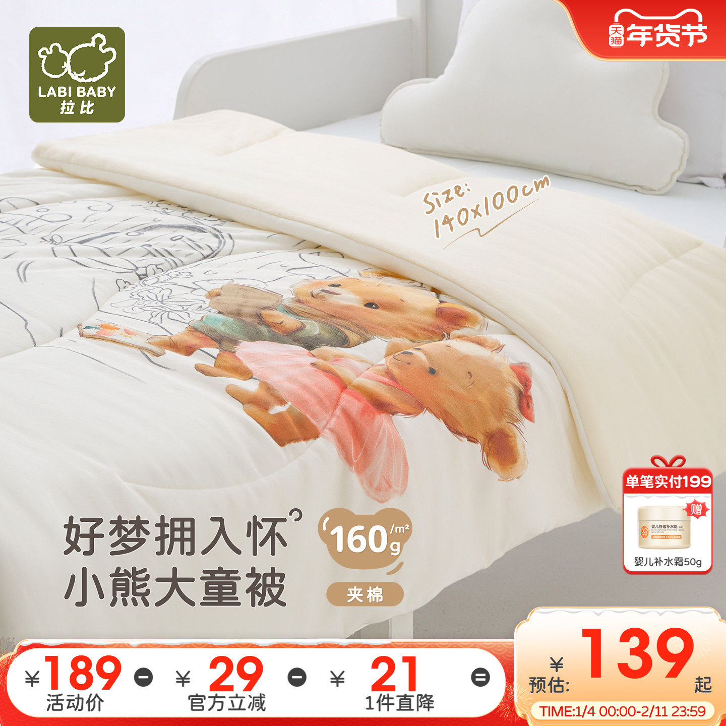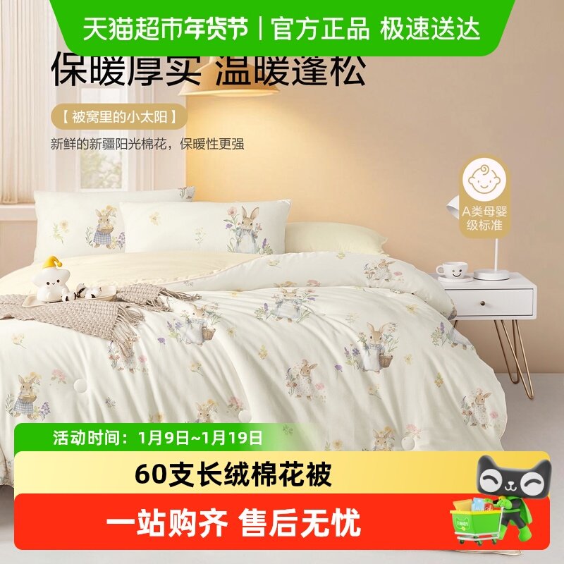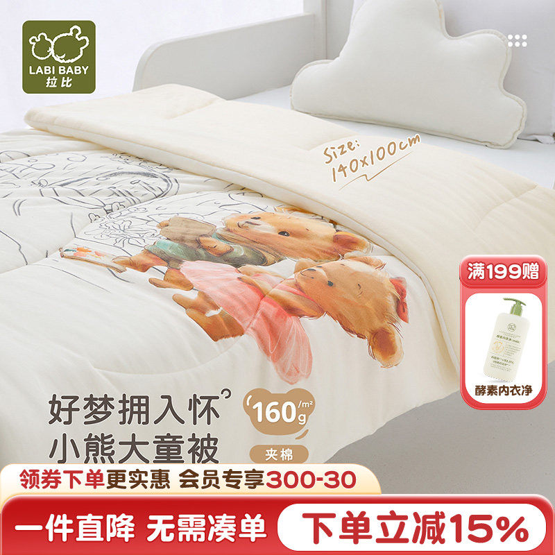 拉比儿童棉被抗菌160g夹棉加厚保暖被子秋冬宝宝盖被冬被140*100