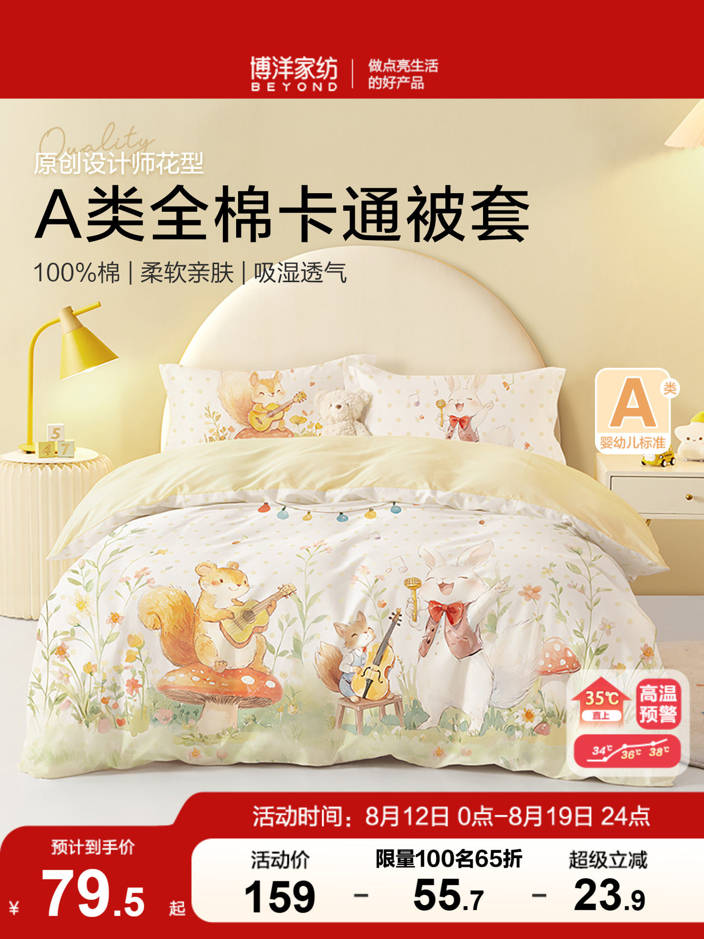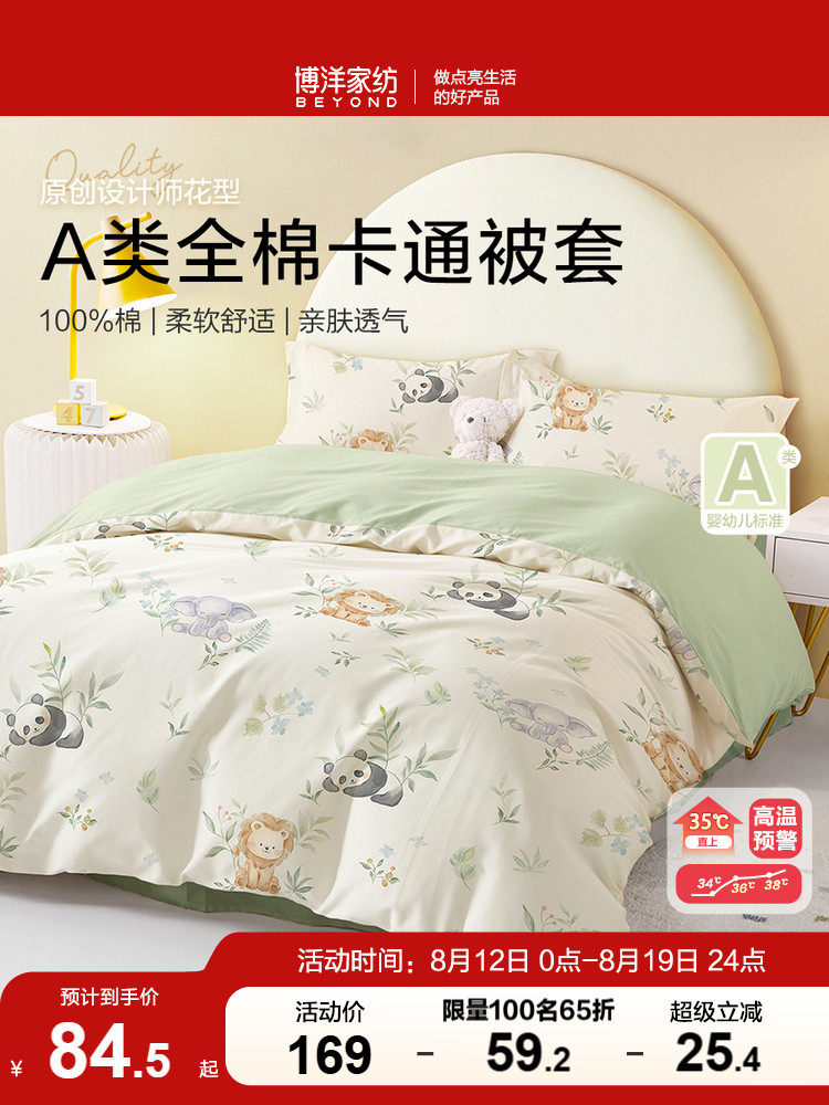 水星家纺幼儿园宝宝A类全棉抗菌被套被子套被罩儿童纯棉被罩换洗