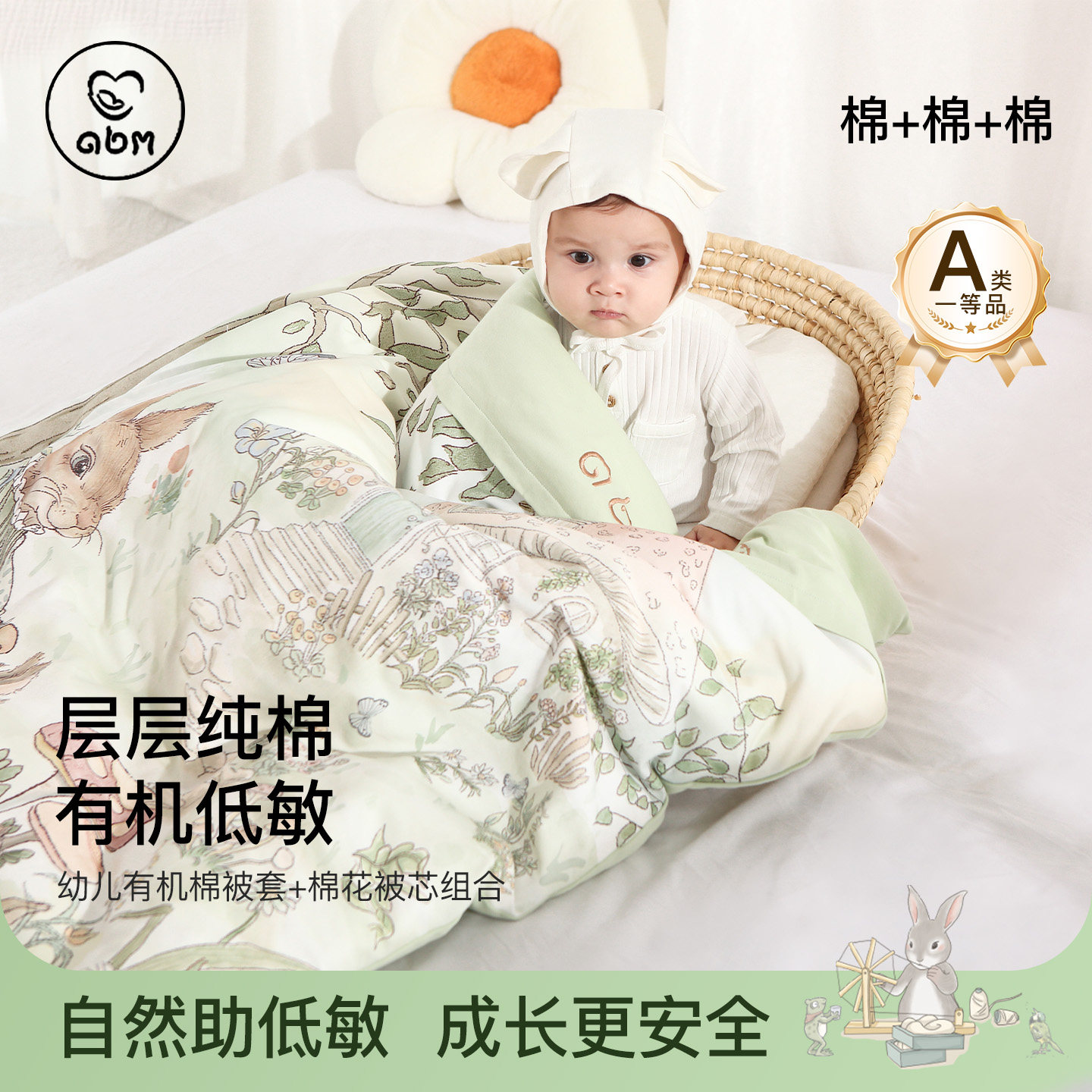 欧孕婴儿被子纯棉宝宝春秋季儿童棉被可拆洗盖被新生儿可机洗a类