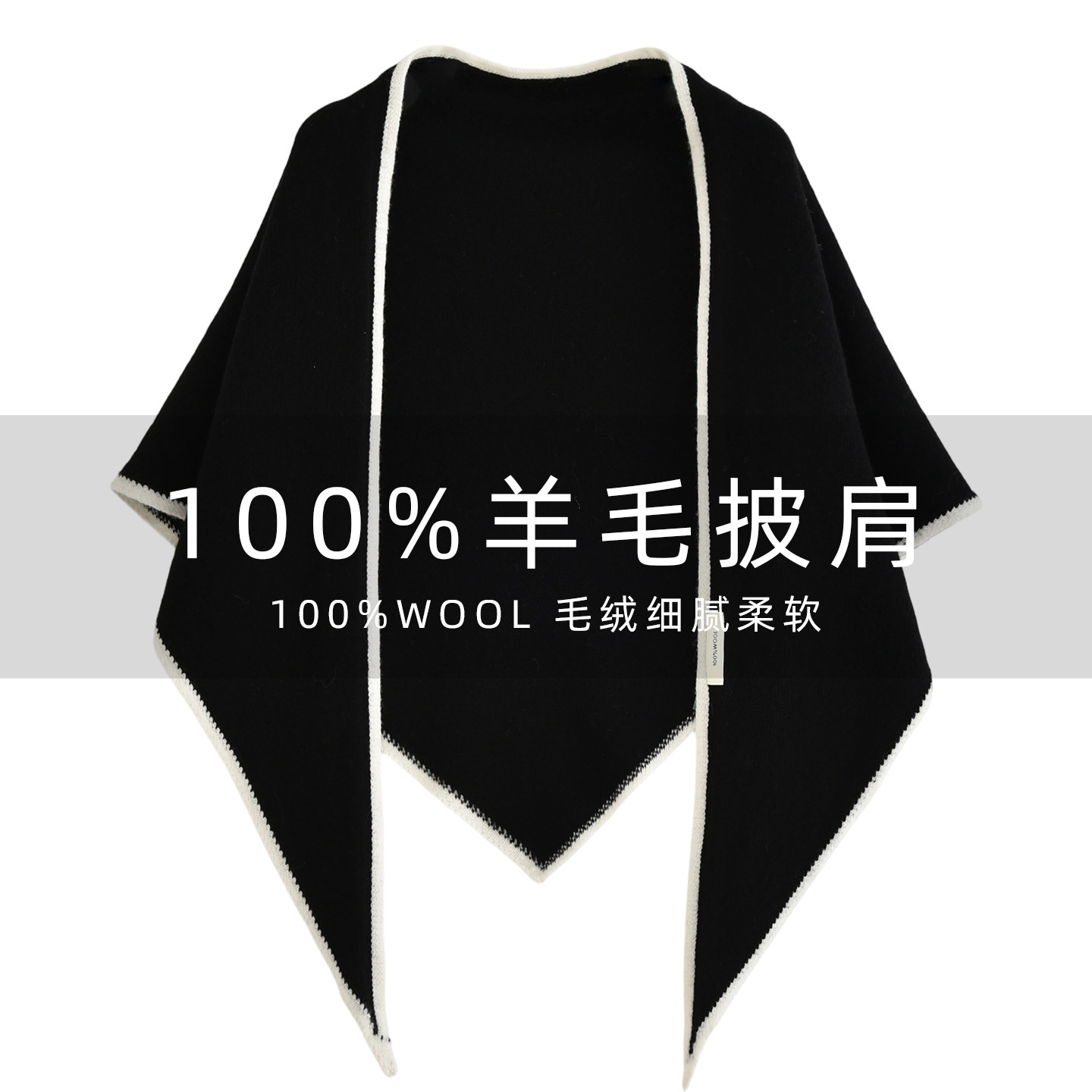 100%纯羊毛针织大三角黑色披肩女外搭秋冬季新款护颈坎肩围巾