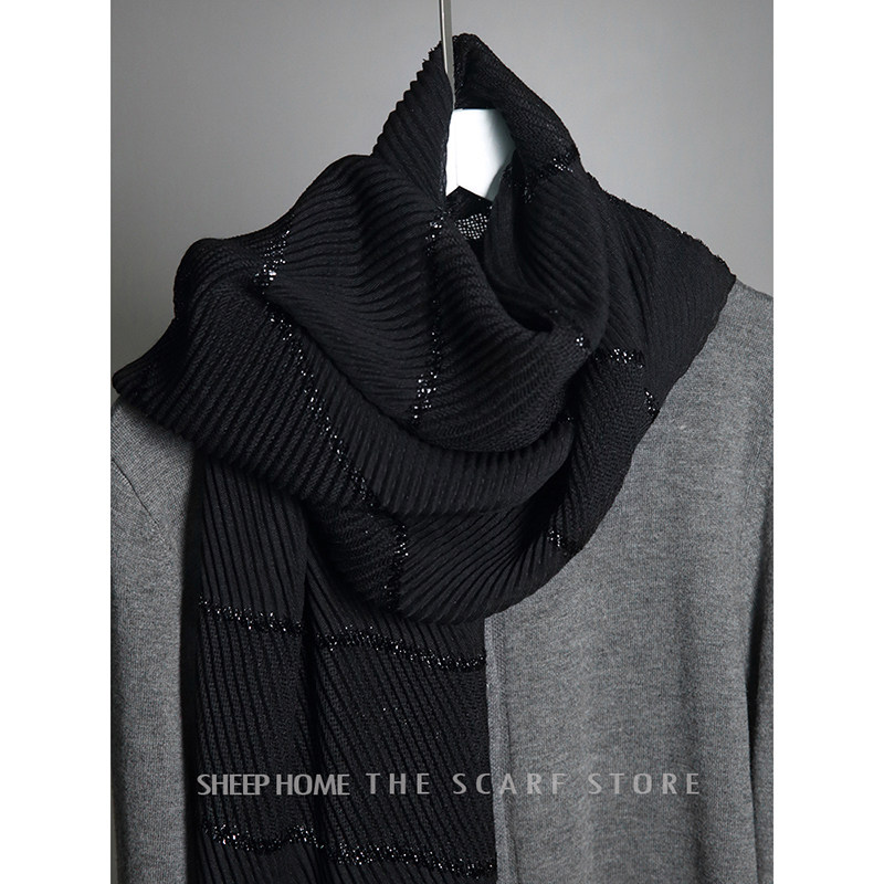 原创定制闪闪美美时尚潮人百搭纯黑色褶皱亮丝蓬松秋冬围巾披巾女
