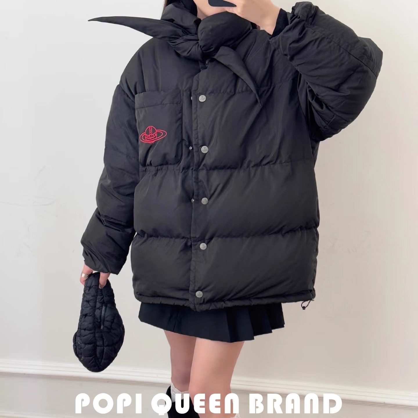 PPQ/女巫羽绒服土星秋冬新款保暖棉服围脖立领高领黑色长款外套女