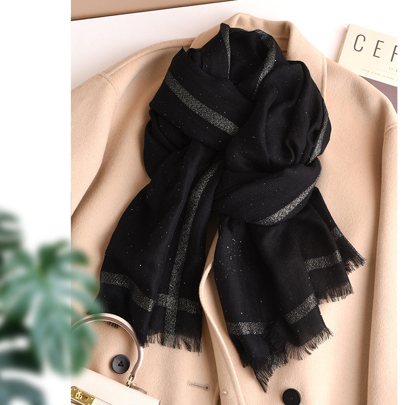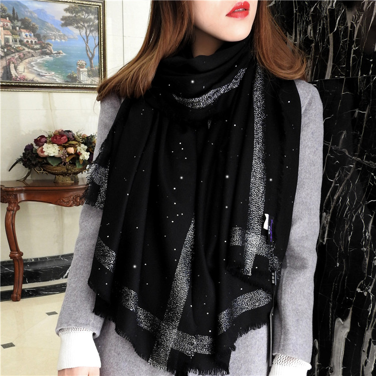 黑色满天星银丝亮片薄款纯水溶羊毛围巾女秋冬季韩版百搭保暖披肩