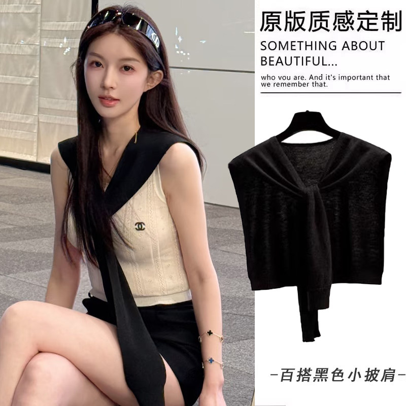 韩系黑色披肩针织外搭女高级感秋冬空调房小坎肩衬衫围巾罩衫配饰