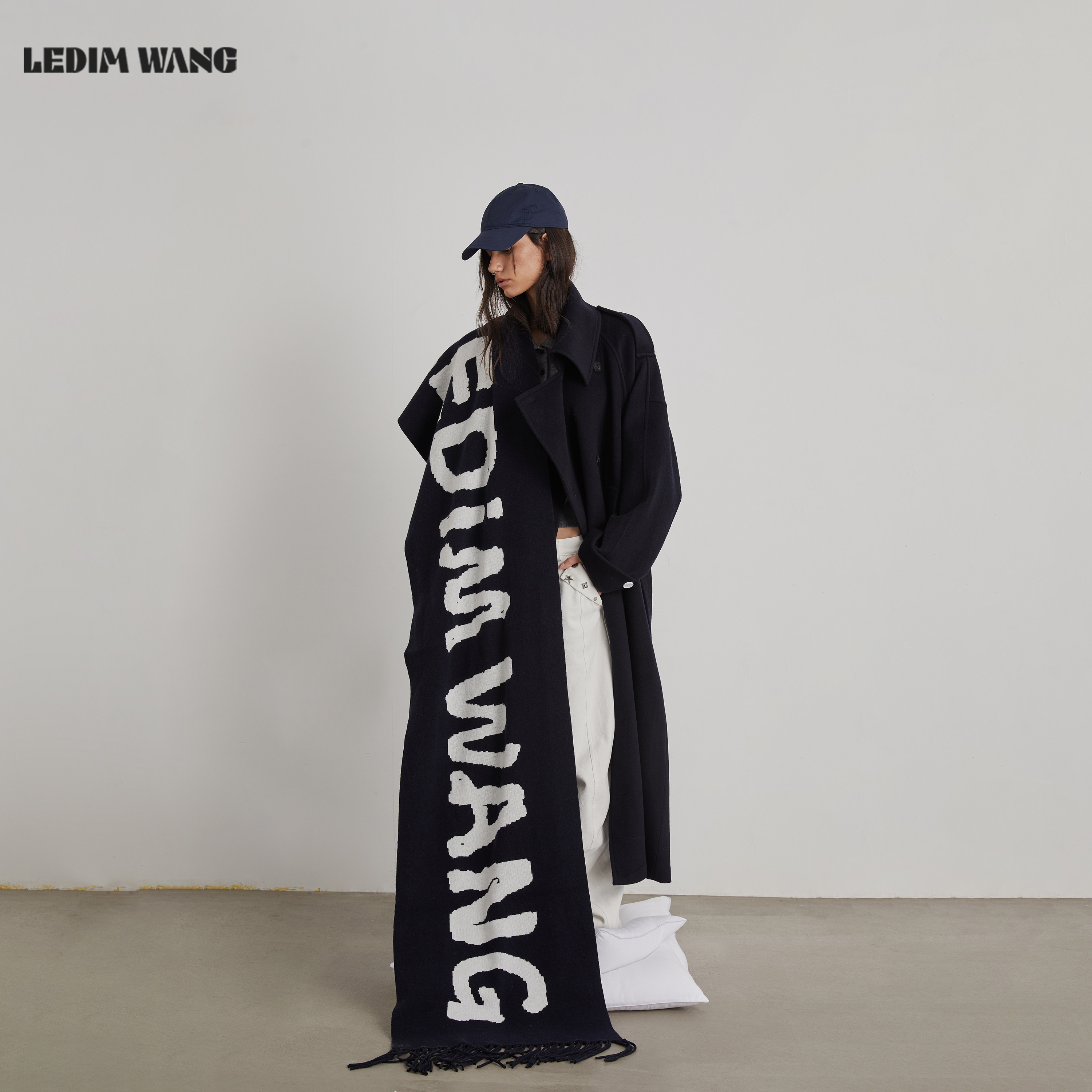 【明星同款】LEDIM WANG粗针刺绣针织围脖女冬季新款氛围黑色围巾