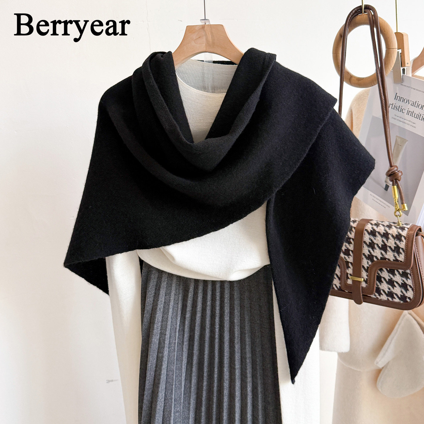 百变个性纯色羊毛围巾女士冬季长薄款披肩秋冬时尚百搭黑色墨绿色
