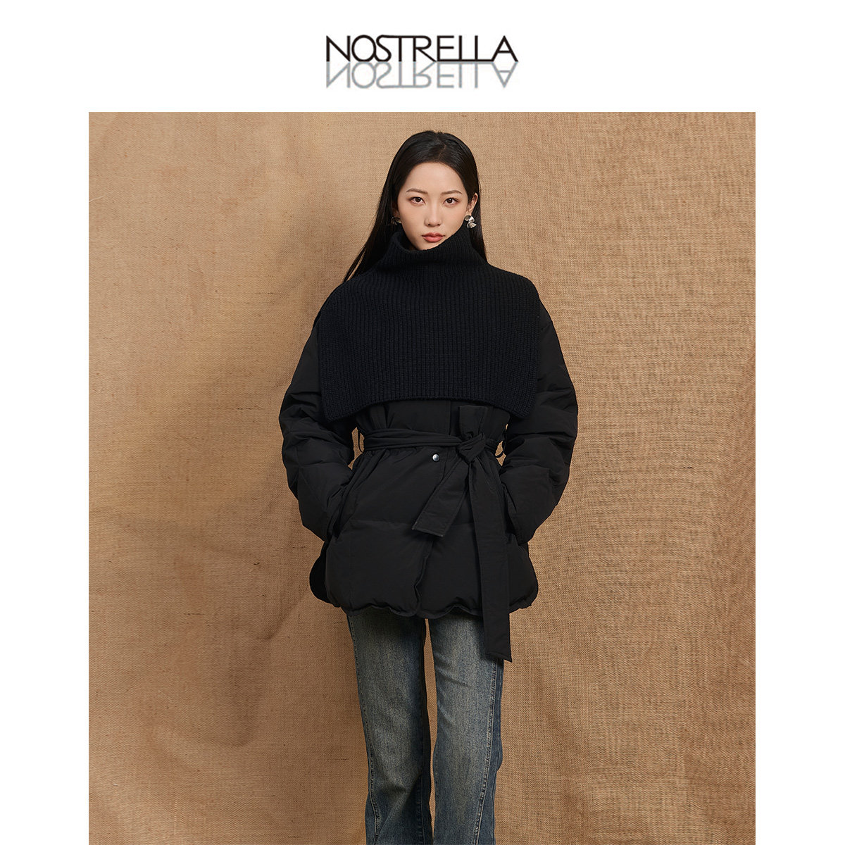 「现货」Nostrella 冬季新款黑色羽绒服羊毛围脖披肩收腰外套女款
