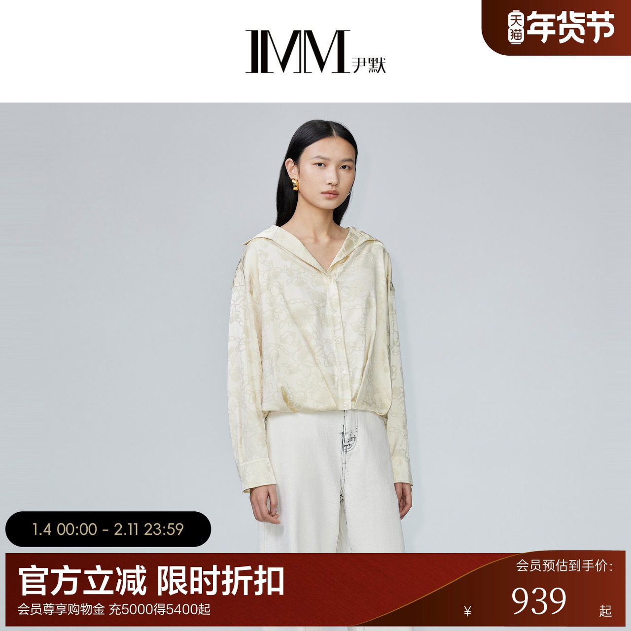 一丝牵 真丝提花花萝国风立领衬衫女桑蚕丝宽松长袖上衣衬衣春季