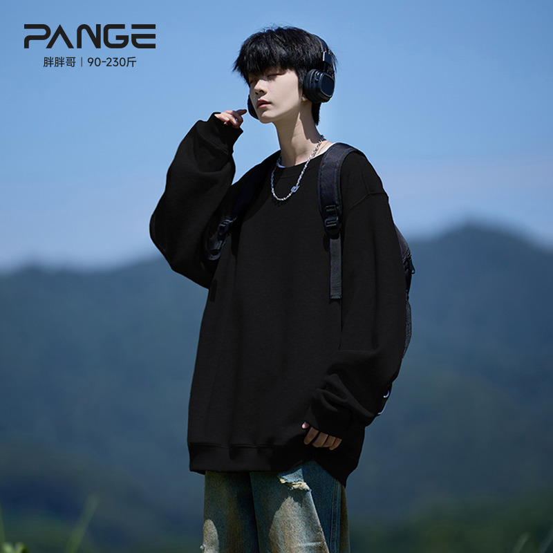 胖胖哥黑色重磅卫衣男秋季宽松纯色长袖T恤打底大码内搭男装上衣