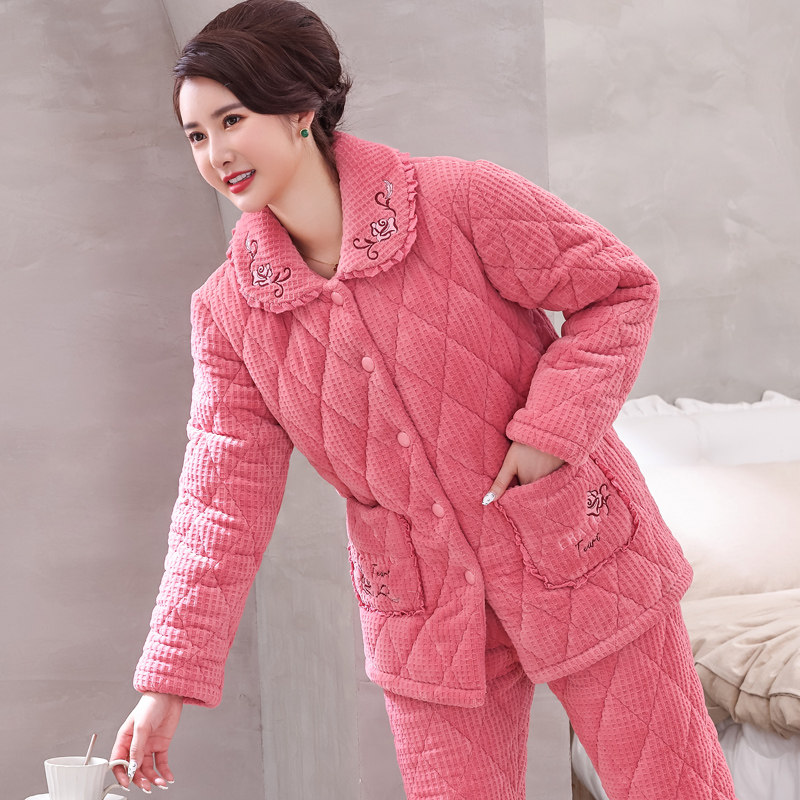 - 珊瑚绒夹棉睡衣女冬