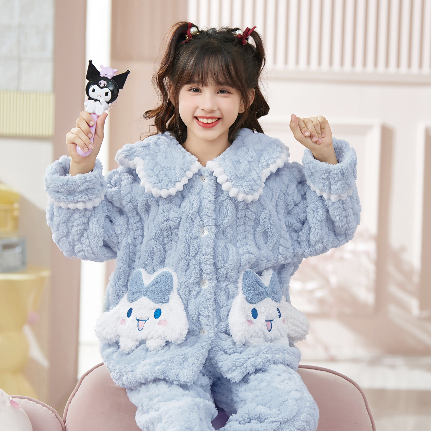 - 睡衣女冬珊瑚绒 韩版 甜美可爱