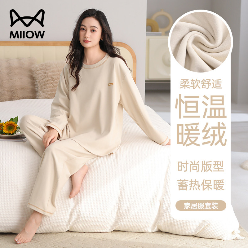 猫人德绒女士睡衣女款2026新款秋冬季保暖加厚薄绒冬天家居服套装