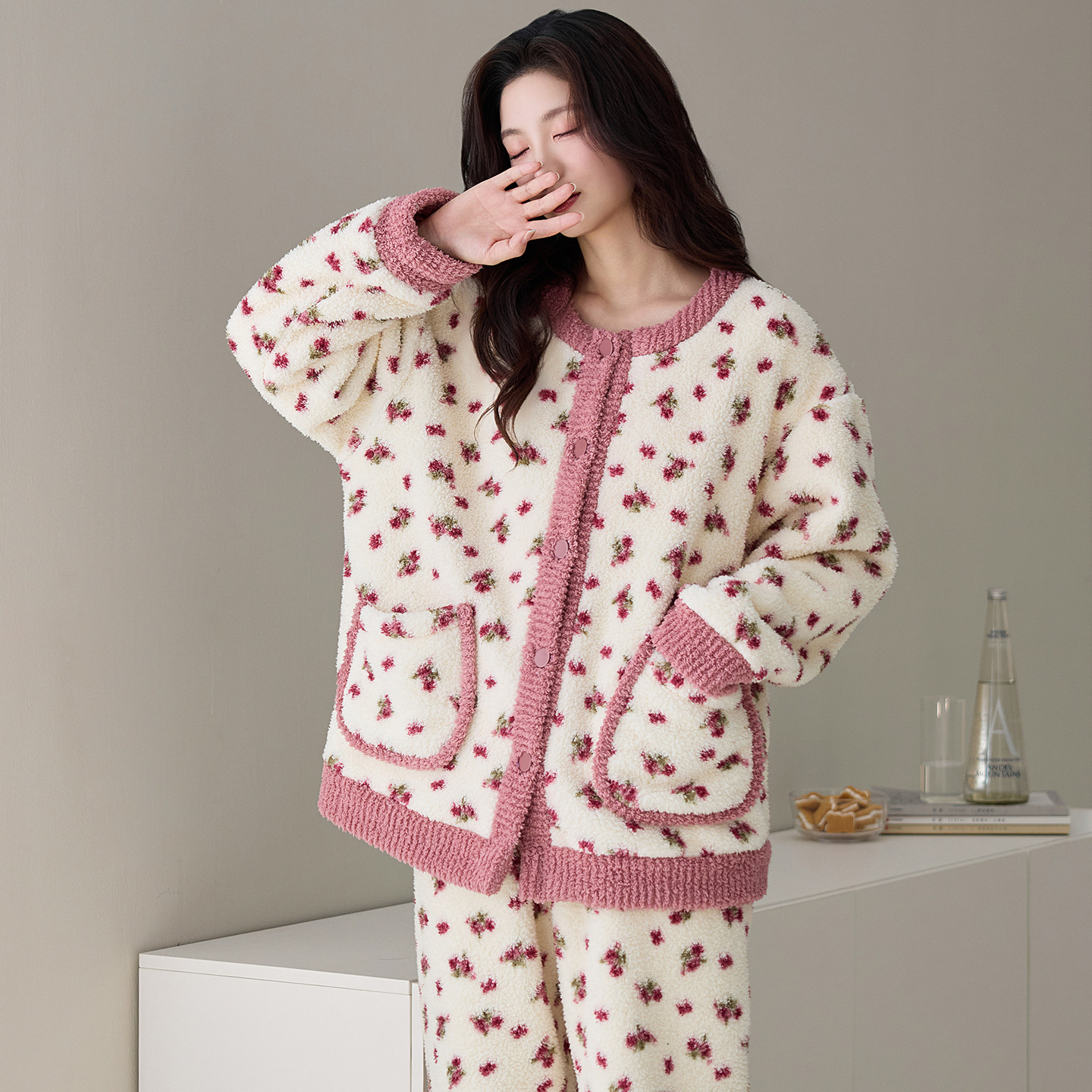 - 珊瑚绒夹棉加厚睡衣女