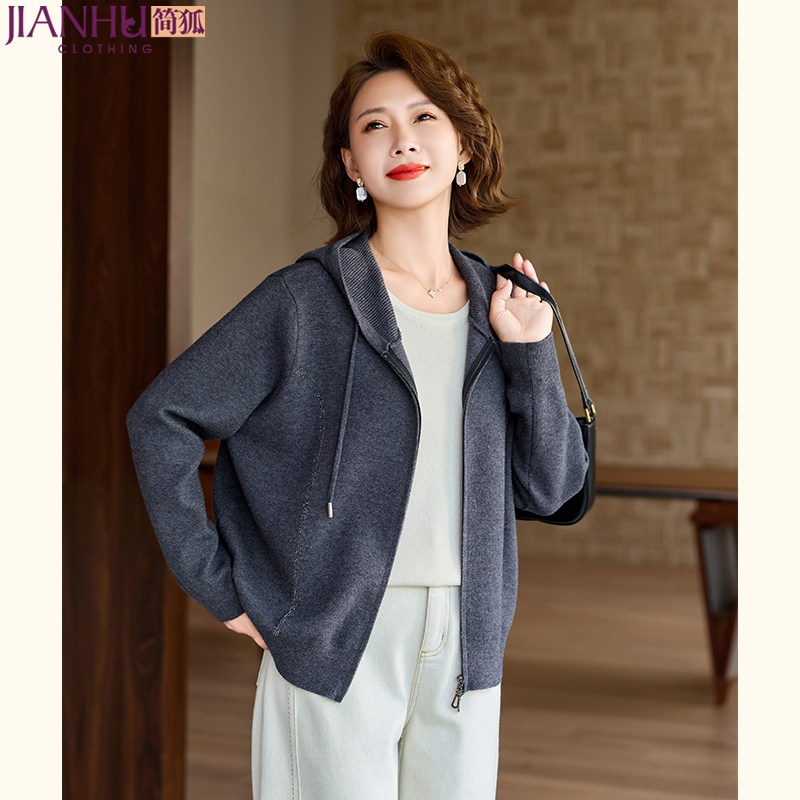她池卫衣外套2026春装新款女装时尚落肩长袖宽松连帽拉链休闲上衣