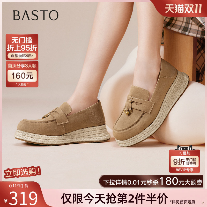 百思图25秋新款一脚蹬草编渔夫鞋厚底乐福鞋女松糕鞋单鞋B0515CA5