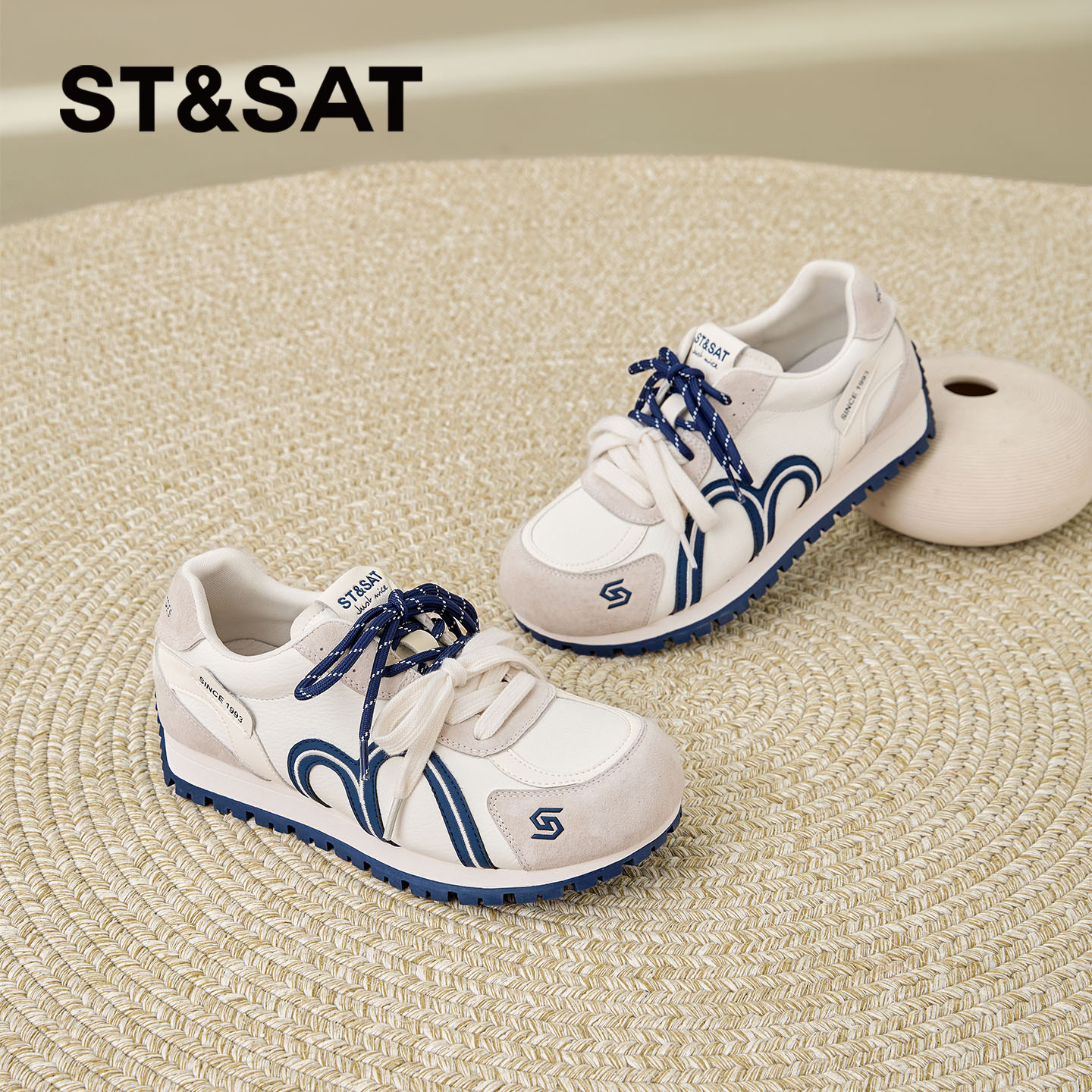 - 圆头系带小白鞋 女真皮