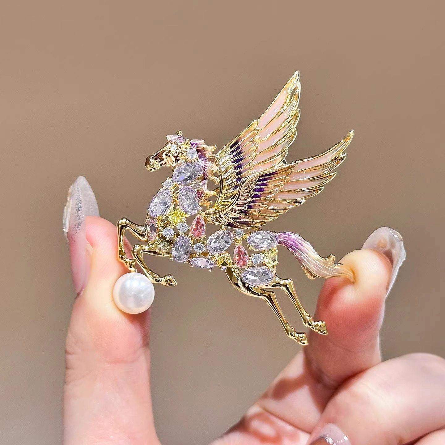 奢华彩钻飞马胸针高档女2026新款气质别针高级感胸花大衣配饰礼物