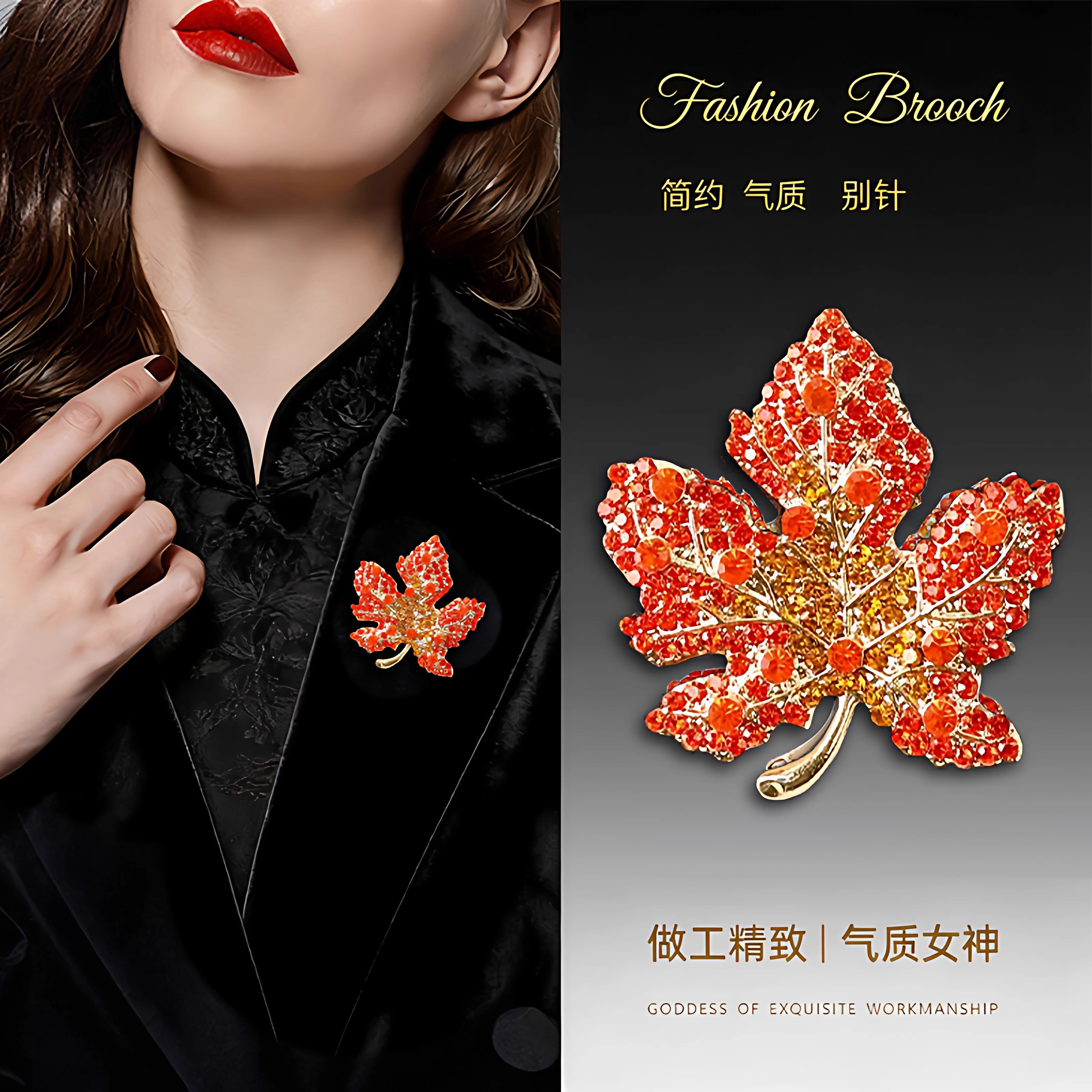 红色枫叶胸花满钻胸针高档女精致别针高级感气质西服高端迎宾配饰