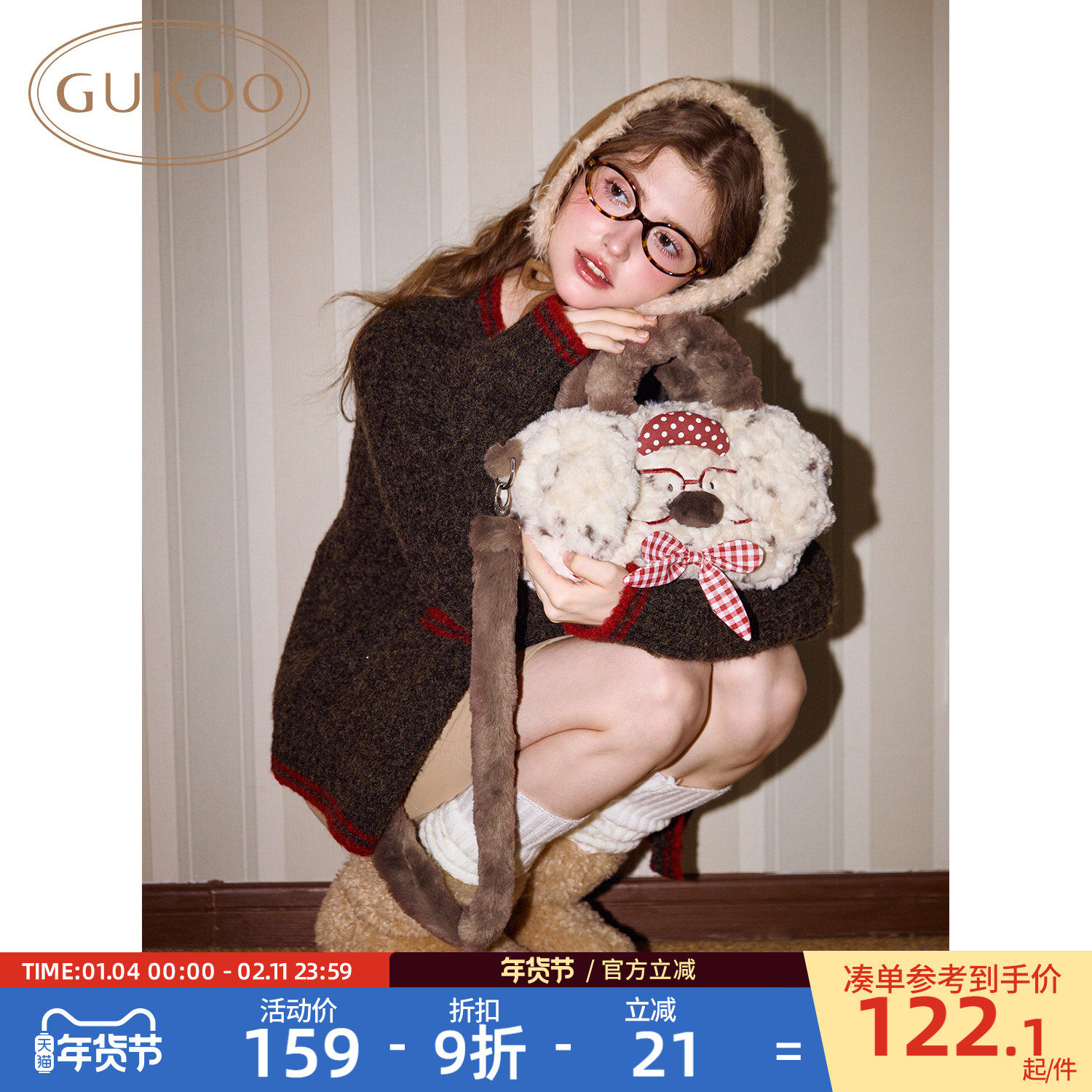 Gukoo/果壳毛绒斜跨包2025新款原创bubble小狗手提包女士通勤包
