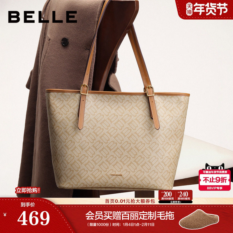 百丽包包女商场同款新年礼物老花大容量妈妈斜跨手提托特包7238AX
