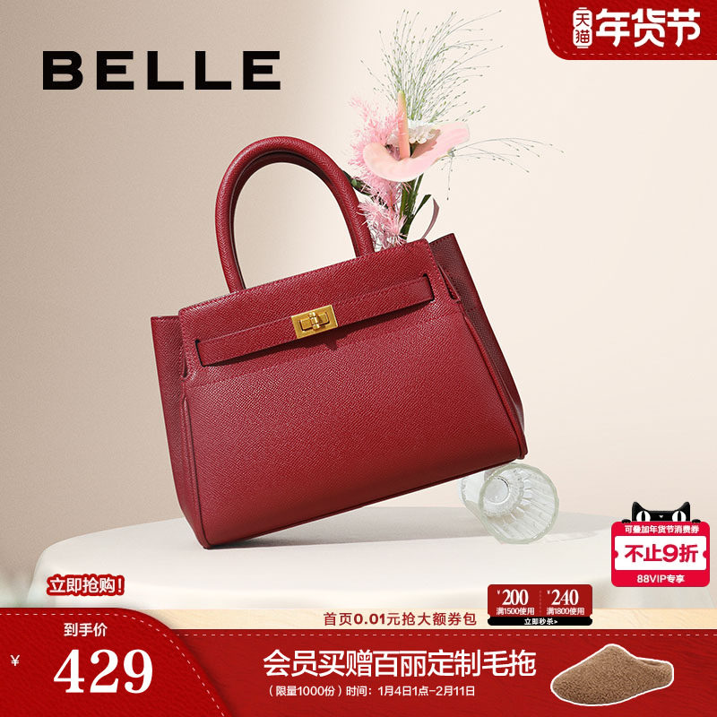 百丽包包女新款商场同款鎏金岁月礼物妈妈手提斜跨红色婚包X7242A