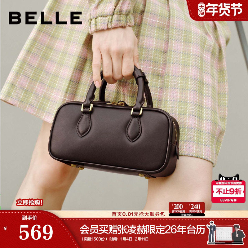百丽包包女商场同款新年礼物绵绵吐司斜跨手提波士顿包X7471AX6