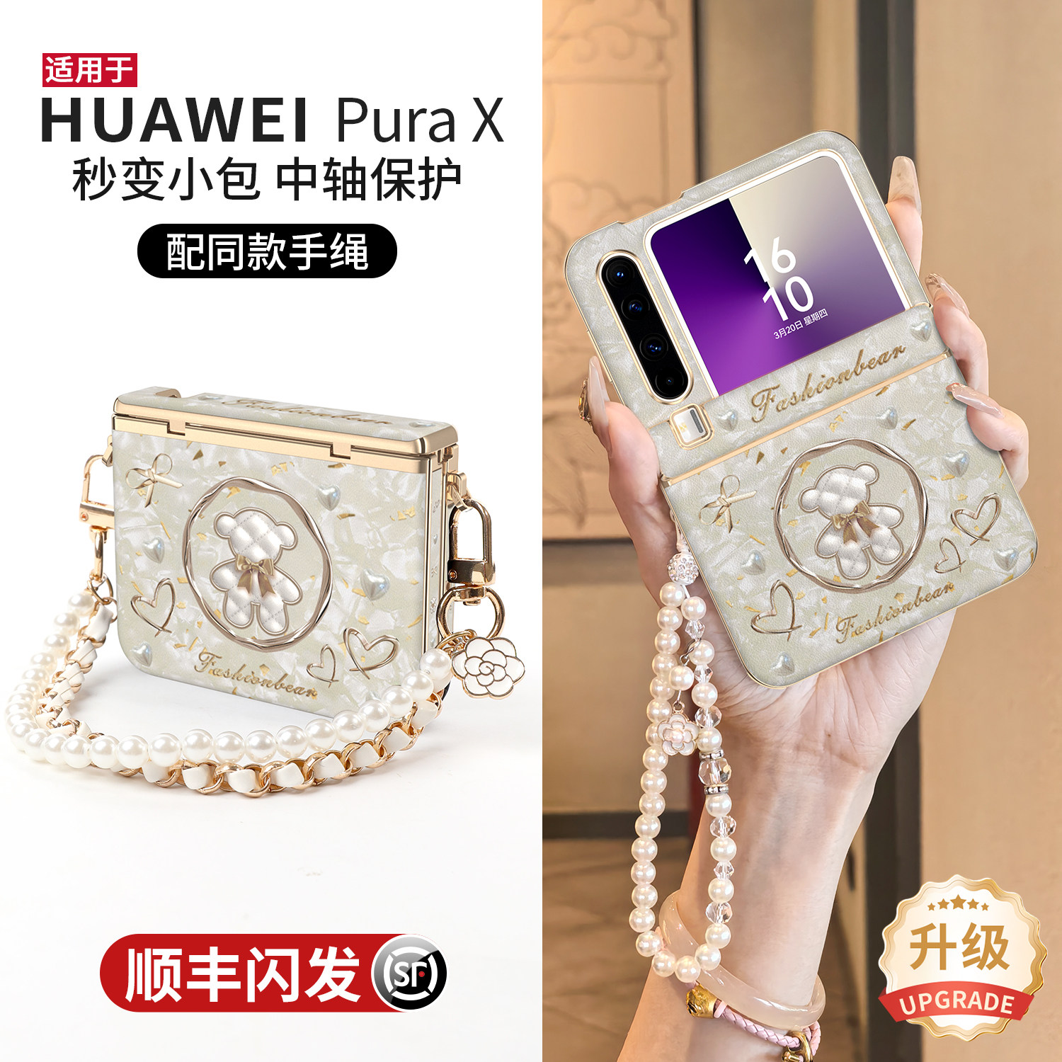 适用于华为purax折叠手机壳新款典藏版pura x中轴全包防摔保护壳带斜跨手提挂绳轻奢高级感胖X高档皮纹机壳女