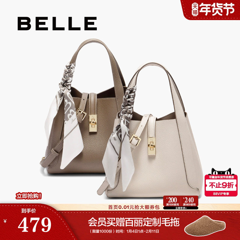 百丽包包女真皮通勤菜篮子新年礼物妈妈手提斜跨水桶包BL828BX5