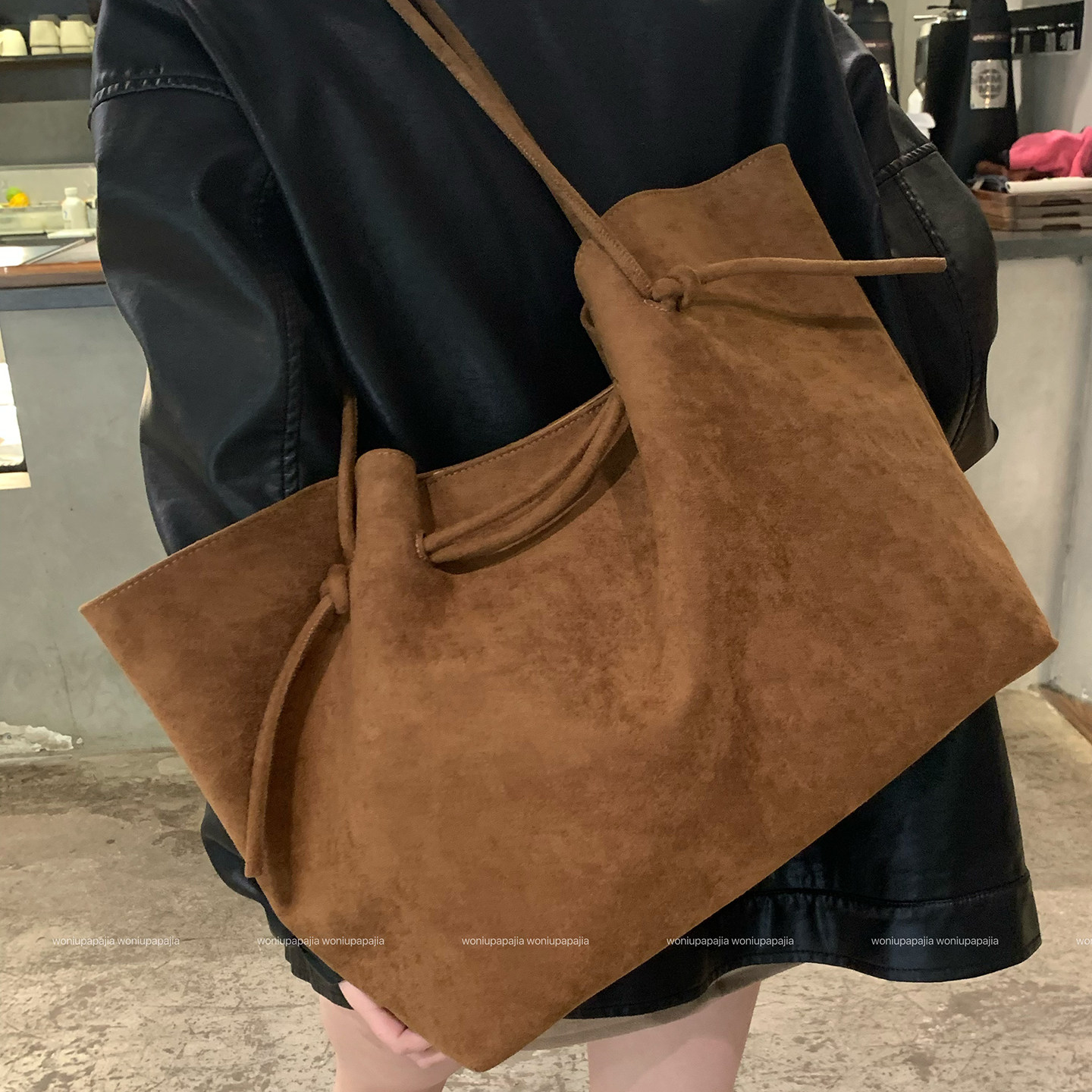 蜗牛爬爬翻毛绒包包女2025新款秋冬大容量托特包斜跨包手提单肩包
