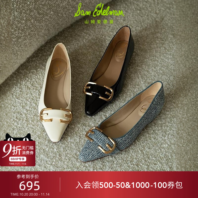 SAM EDELMAN山姆爱德曼秋休闲复古方头黑色平底鞋单鞋女鞋JETT