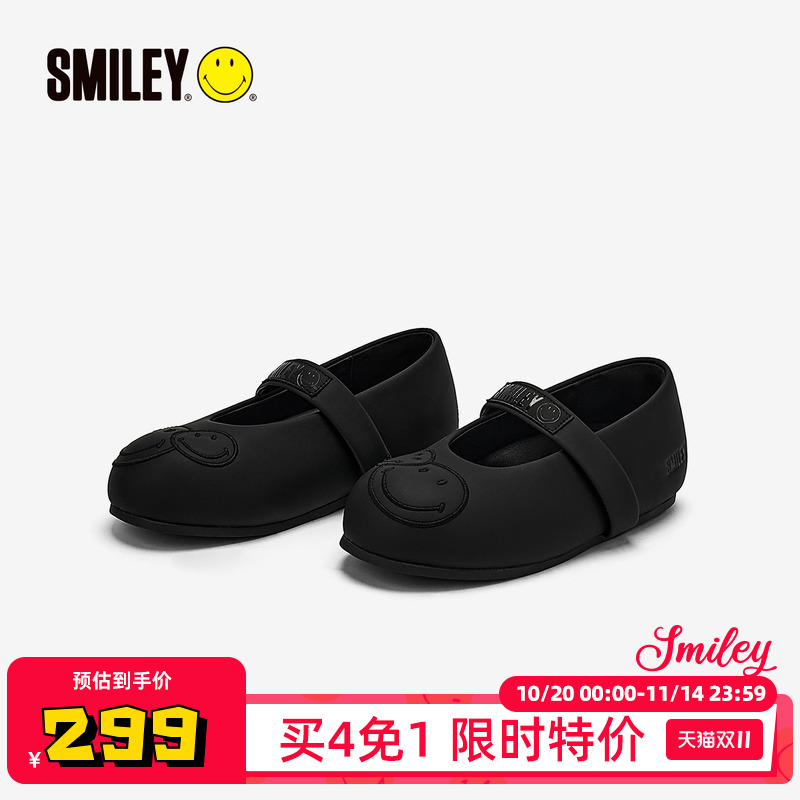 SMILEY笑脸香蕉鞋女黑色平底舒适通勤浅口圆头单鞋芭蕾风玛丽珍鞋