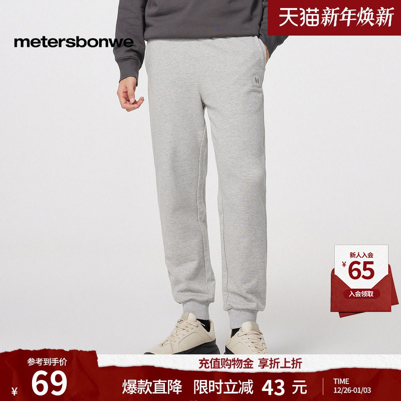 美特斯邦威男女同款精致刺绣束脚裤秋冬季款舒适时尚舒适百搭长裤