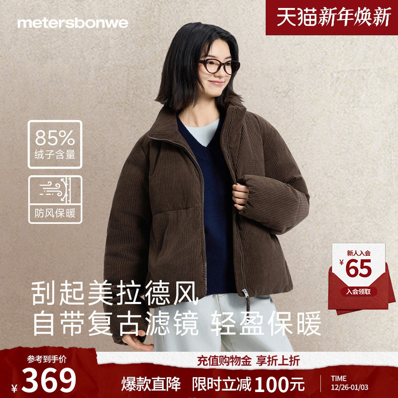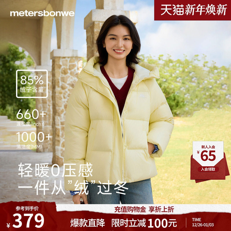 美特斯邦威短款羽绒服男女同款2025冬季新款时尚保暖连帽外套上衣