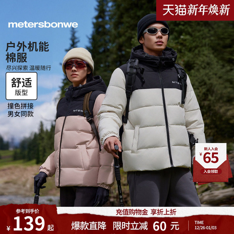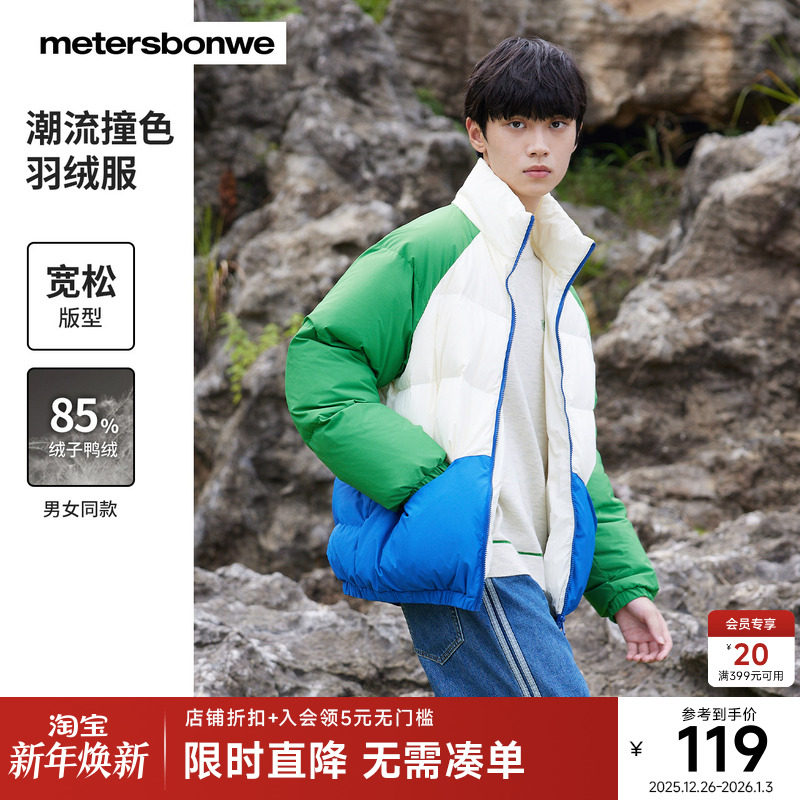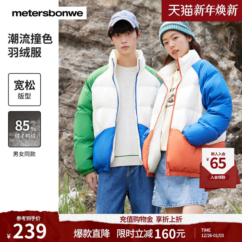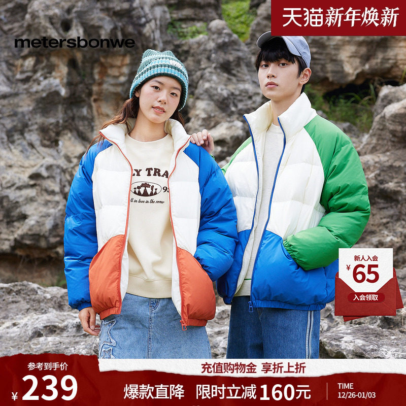 美特斯邦威面包羽绒服秋冬男女同款潮流时尚撞色拼接舒适保暖外套